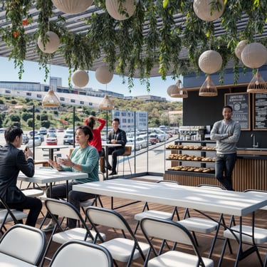 Diseño y construcción de terraza con cafe deli para maquiladora